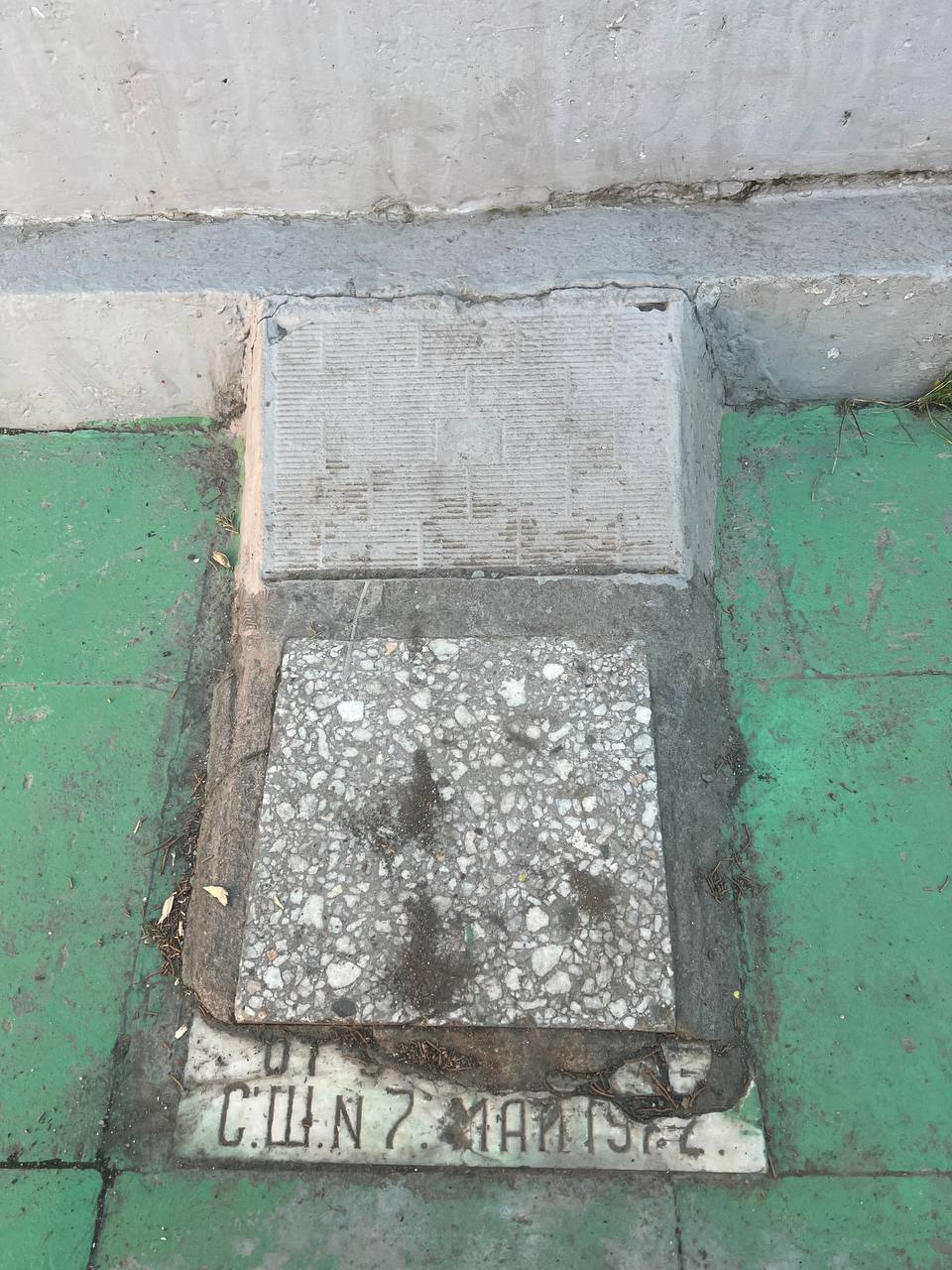 · Вандалы нарисовали смайлик на плиточном пьедестале, оскверняющую память павших.