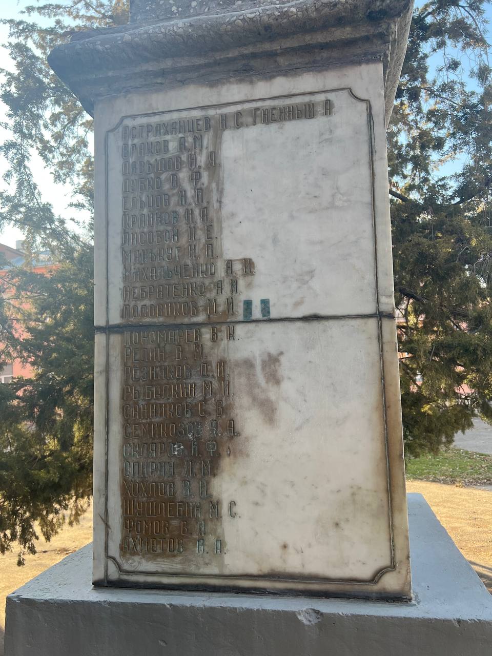 · Почернели мемориальные плиты с именами погибших – некоторые имена уже сложно прочитать.