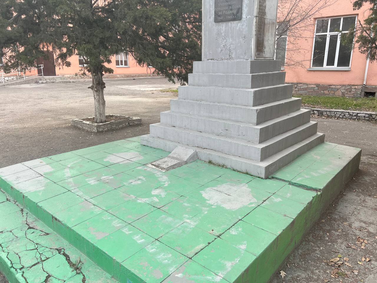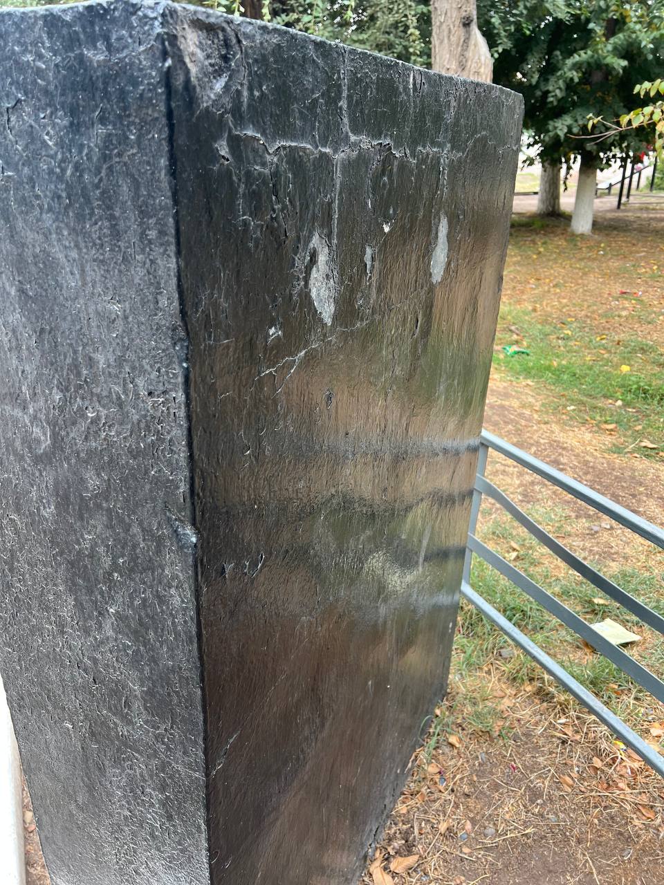 · Облупилась краска на основании монумента.